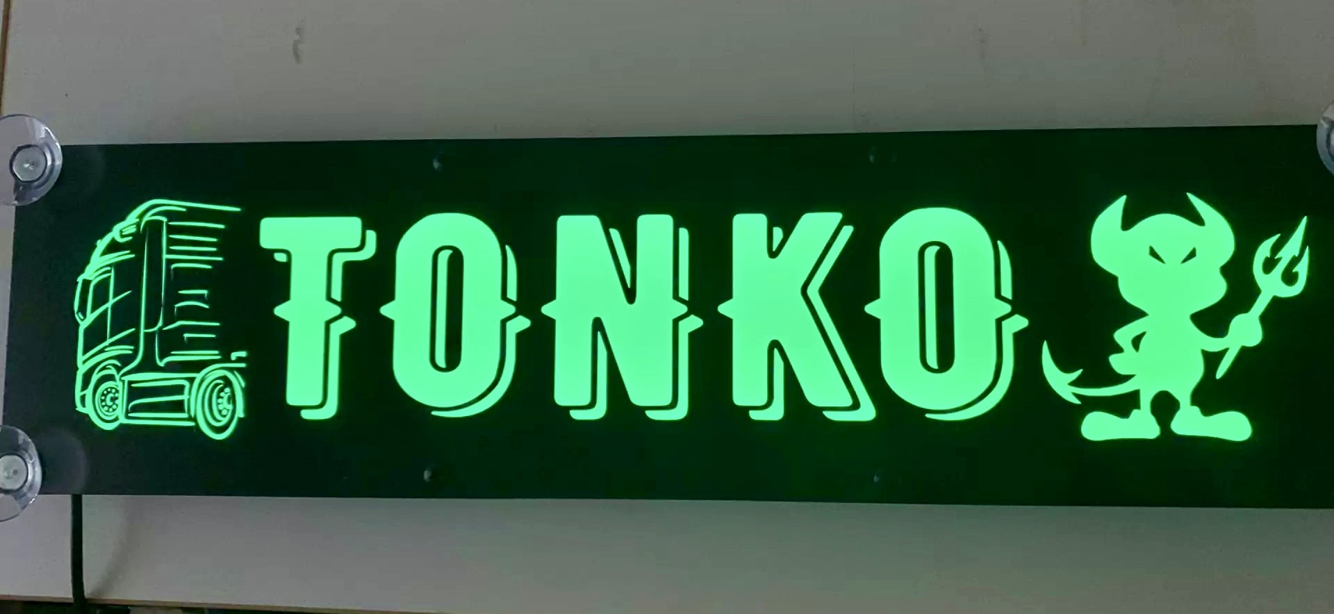 LED tabuľa vo farebnom špeciálnom vyhotovení. Súčasťou sú 4 prísavky, 2m kábel. Napájanie 12V. Výroba je náročnejšia, preto je potrebný dlhší čas na dodanie.